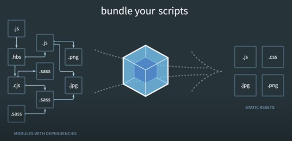 - 자바스크립트파일 뿐만 아니라 css, .jpg등 다른 확장자 파일도 번들링하는 역활 수행