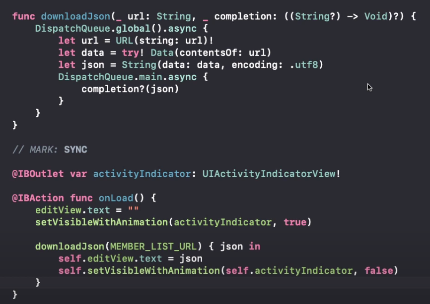- Apple์ ๋น๋๊ธฐ ์ฝ๋๋ฅผ ์์ฑํ๋ ๋ฐ ๋ง์ API๋ฅผ ์ ๊ณต.