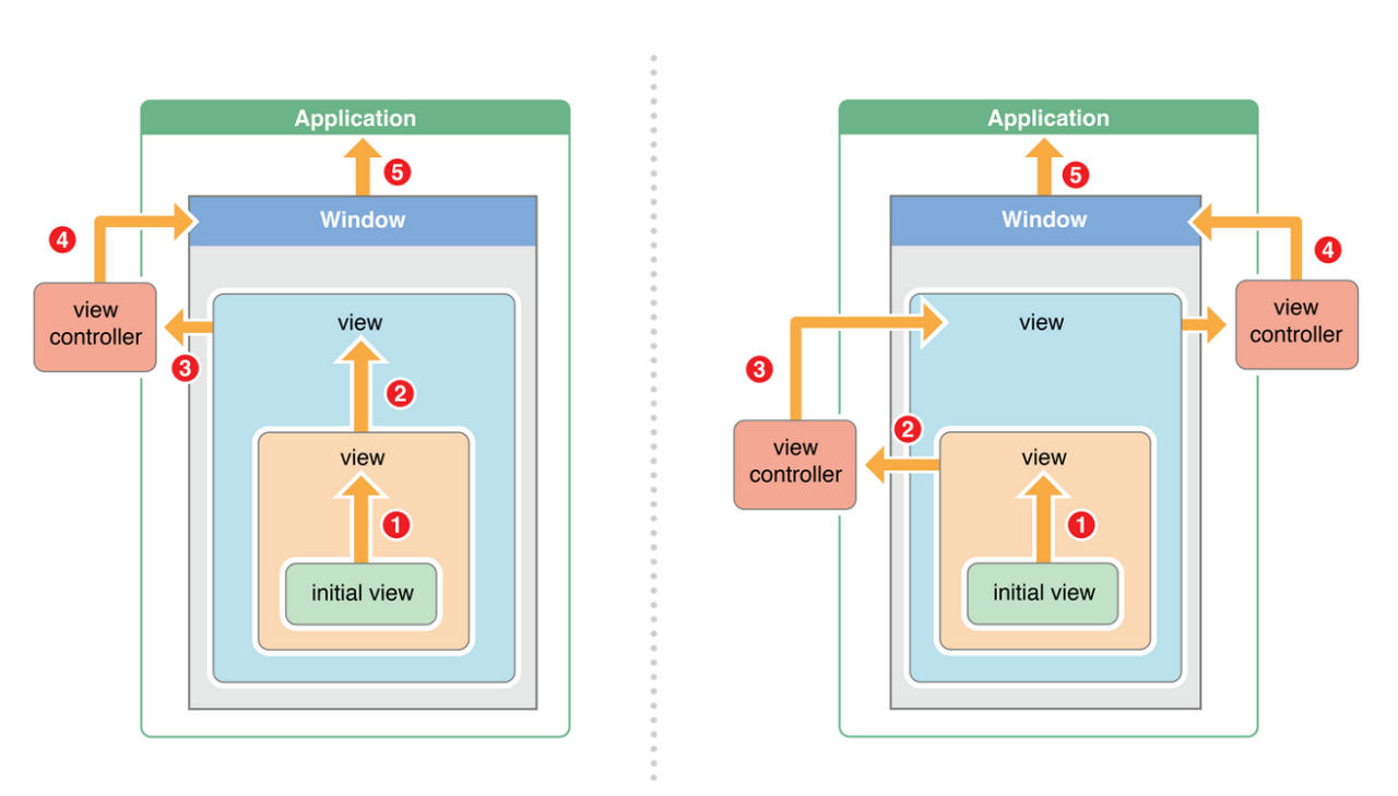 - The chain continues up the view hierarchy until it reaches a view that is associated with a view controller