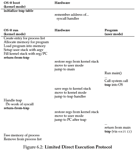 - OS는 사용자 프로세스가 요청한 작업을 처리한다. 작업이 완료되면 return-from-trap instructoin을 실행