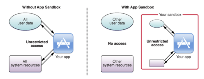- iOS๋ ๊ธฐ๋ณธ์ ์ผ๋ก ์ฑ๋ง๋ค ๋ณ๋์ ํ์ผ์ ์์ฑํด์ ๊ณต์ ๋์ง ์๋๋ก ํ๊ณ ์ธ๋ถ๋ก๋ถํฐ ๋ค์ด์จ ์ ๊ทผ์ ๋ํด์ ๋ณดํธ๋๋ ์์ญ์ผ๋ก ์์คํ ์ด ๋ถ์ ์ ์ผ๋ก ์กฐ์๋๋ ๊ฒ์ ๋ง๋ ๋ณด์ ํํ๋ฅผ ๊ฐ๊ณ ์๋ค.