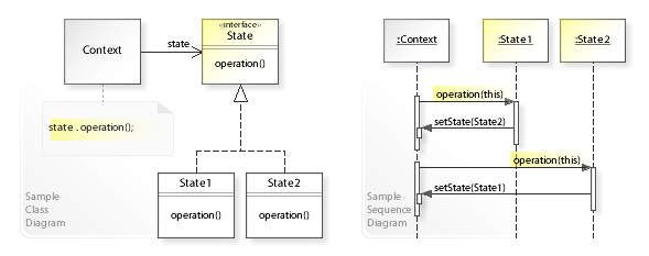 - 객체 내부의 상태 변화에 따라 객체의 행위를 바뀔수 있게해주는 패턴
