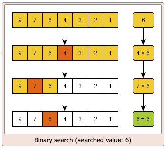 - 정의 : 데이터 집합의 범위를 반씩 나누어 가면서 분할정복하여 탐색하는 방법